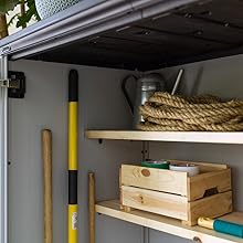 • IDEAL SIZE: Generous storage capacity of 62. 05 cubic foot perfect for garden tool storage